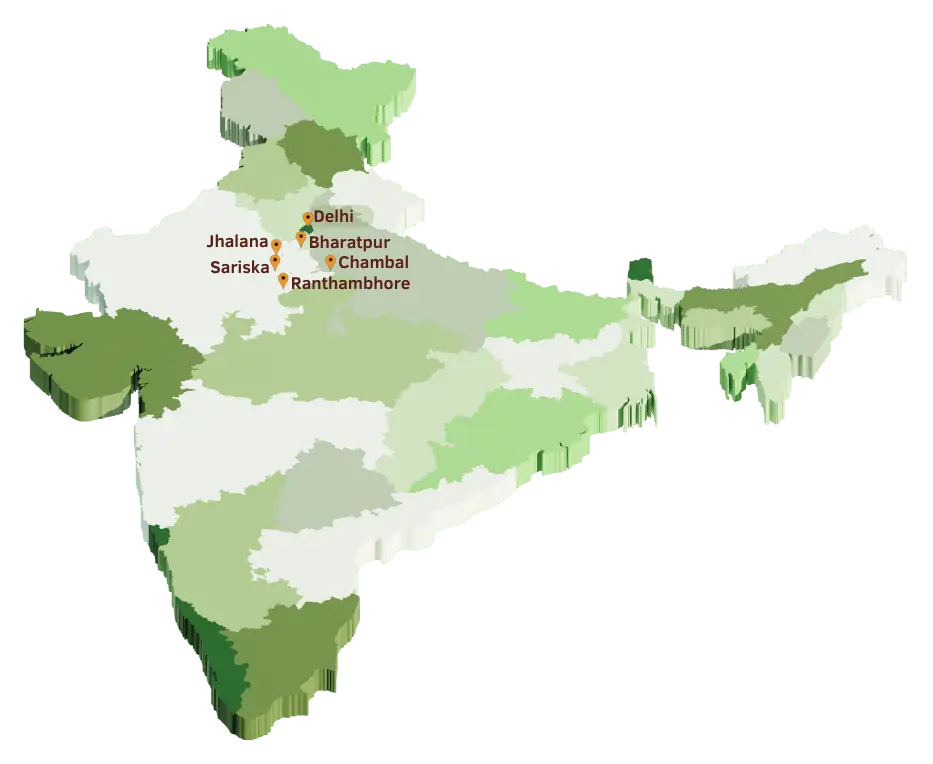 Later after lunch we drive to Ranthambhore (Aprox 5 hrs) and birding on way if possible